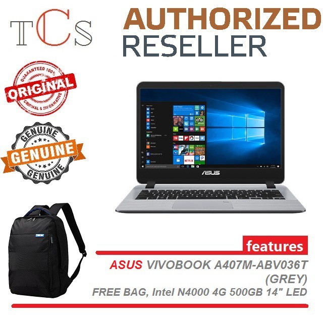 Asus A407m Abv036t Grey N4000 4gb 500gb 14 W10 1yr Backpack